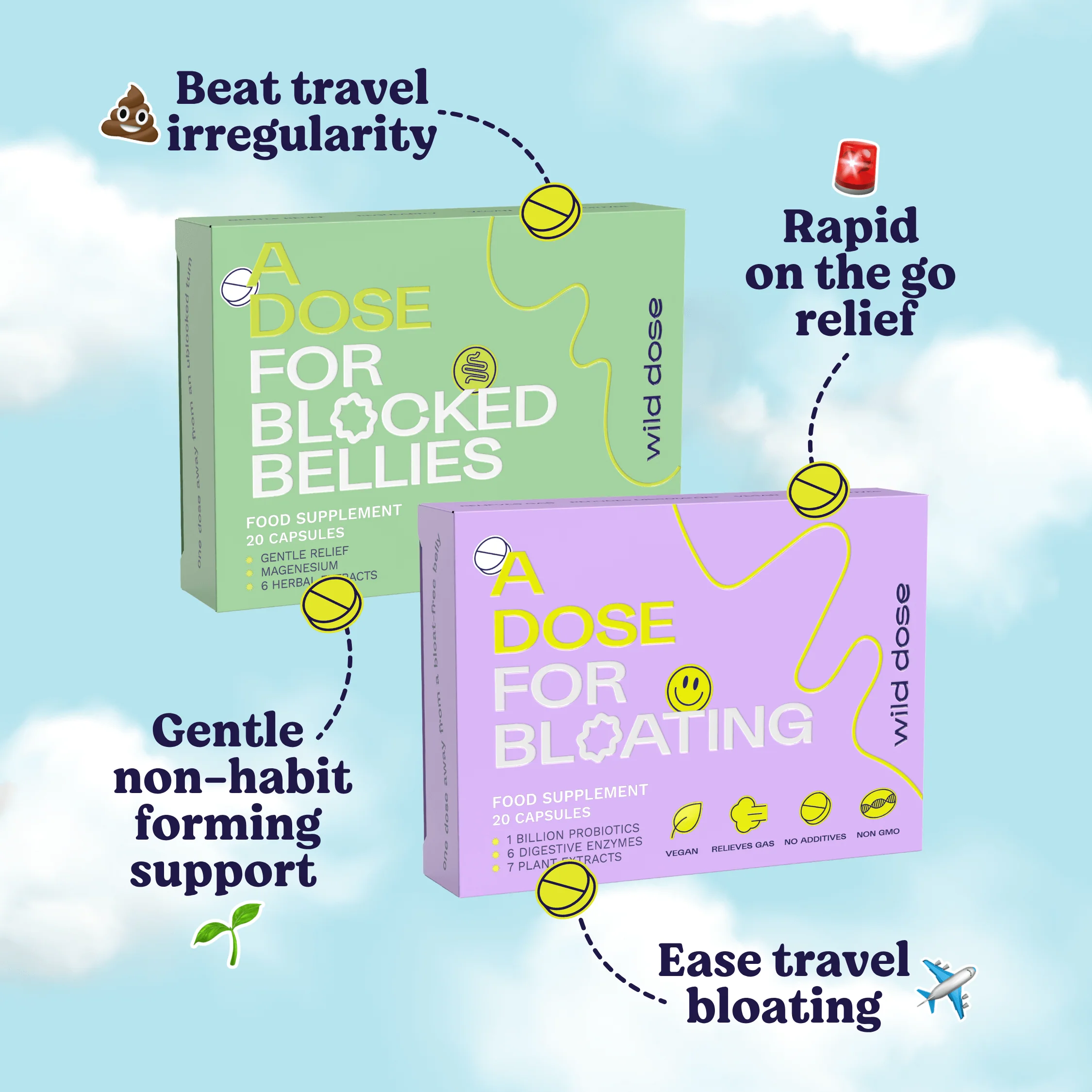 The perfect size for throwing in your bag and taking on your travels, our two best-selling formulas are daily essentials that support digestion, beat the bloat, and help you stay regular - so you can focus on enjoying every moment of your holiday, not worrying about your tummy.
